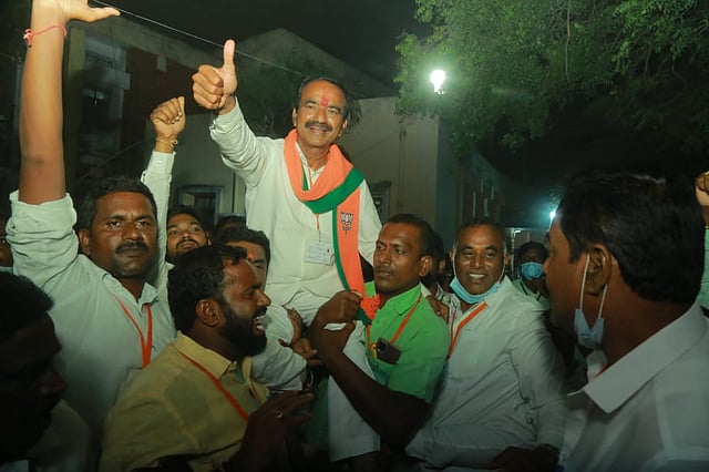 Eatala Rajender, who extracted a sweet revenge with a thumping victory said, “The victory was historic. This is a slap on the face of KCR. It is a condemnation of the gross abuse of authority, distribution of money, and a host of poll code violations.”