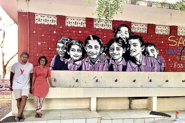 Hyderabad based couple Swathi and Vijay are using art to fight the school dropout rates in Telangana villages. The couple, whose distinctive signatures mark the creative graffiti around the streets of Hyderabad, is giving an artistic makeover to the schools in Telangana’s villages which are under the grave threat of closure due to high dropout rates.