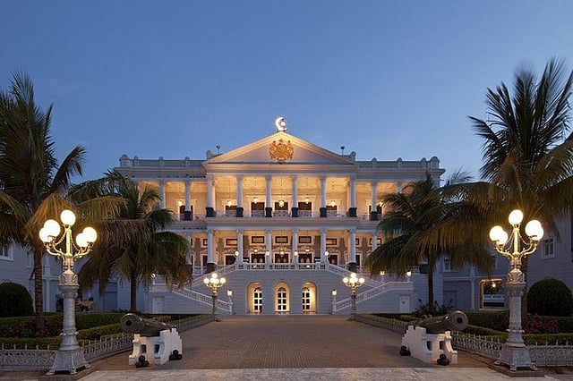 Built over 32 acres, the scorpion-shaped and all-marble palace stands tall in its splendour and majesty atop a hill, at 2,000 ft above sea level and overlooks the old city of Hyderabad.