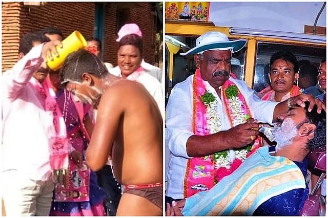 Gone are the days when politicians tried wooing voters with liquor and cash. While some leaders in the state of Telangana will be seen at their humble best for the next month, yet others are desperately attempting to portray themselves as the leader of the masses. A series of pictures which have gone viral on social media show a few TRS MLA candidates who have taken the election campaigning to new levels, leaving the Opposition and voters alike, flummoxed!