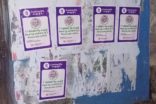 Telangana’s Munugode witnessed mild tensions on Monday, October 10 ahead of the bye-poll, after posters accusing BJP MLA Komatireddy Rajagopal Reddy of corruption were pasted across Chandur town. The posters showed a logo that said ‘Contract Pe’, resembling that of the UPI app PhonePe, with Rajagopal’s face in the centre and text that said “Rs 18,000 crore has been transferred to contractor Komatireddy”.