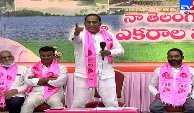 Slapping his thigh in typical Telugu action movie style, Telangana Labour Minister Ch Malla Reddy on Wednesday, August 25, dared Telangana Congress president Revanth Reddy to resign and recontest in the Malkajgiri parliamentary constituency. The challenge was in response to the allegations made by Revanth Reddy, the Malkajgiri MP, against the Minister during the Dalita-Girijana Deeksha held in Muduchintalapalli in Medchal-Malkajgiri district. At the meeting, Revanth accused Malla Reddy, the former MP of Malkajgiri, of being a land grabber while addressing him as a "joker" and "broker."