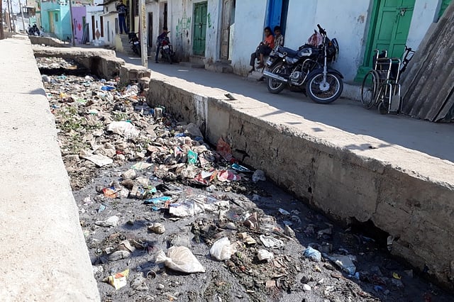 On Saturday evening, the area witnessed the death of a two-year-old, who had fallen into an open drain. The drain runs right in the middle of the street, with houses on either side.