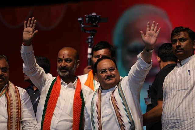 Accusing the TRS government in Telangana of being one of the most corrupt regimes and also playing appeasement politics, BJP president JP Nadda on Thursday, May 5, said people's mood in the state is in favour of a change and to install a BJP government. Addressing a public meeting at Mahabubnagar as part of state BJP chief and MP Bandi Sanjay Kumar's ongoing second phase of padayatra, Nadda said people want a "double engine" BJP government in the state with the blessings of Prime Minister Narendra Modi to take Telangana forward.