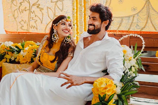 The date for the wedding was fixed as August 8 and the pre-wedding celebrations are in full swing. Here's a photo of Rana and Miheeka from their haldi ceremony held on Thursday.