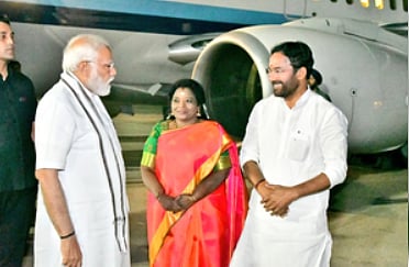 Prime Minister Narendra Modi will inaugurate the Civil Aviation Research Organisation (CARO) centre in Telangana’s Begumpet on Tuesday, March 5. He landed in Hyderabad on Monday night after attending Bharatiya Janata Party’s ‘Thamarai Manadu’ event in Tamil Nadu’s Chennai. Telangana Governor Tamilisai Soundararajan and Union Minister for Tourism and Culture G Kishan Reddy received him at the Begumpet airport.