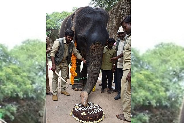 A photo of an old majestic elephant cutting a cake did the rounds on social media on Saturday. Meet Rani, an enthusiastic and one of the most-loved inmates of the Hyderabad’s Nehru Zoological Park. Rani turned 80 on Saturday, and zoo officials ensured that Rani celebrated her birthday in grandeur. Rani cut a giant plum cake for the occasion with a knife she held with her trunk. The 80-year-old is the oldest mammal in the zoo, and is a favourite among the zoo’s keepers.