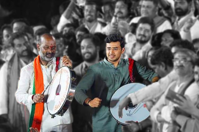 It was typical September weather in Telangana’s Kamareddy town. Mild showers for one hour and scorching heat for the next. A large crowd had gathered and soon, dappu artists clad in saffron clothes were charging up the public’s mood with beats and songs. Minutes later, Telangana BJP chief Bandi Sanjay arrived at the venue, which was part of his 'Praja Sangrama Yatra' and went on to urge people to vote for his party and oust the ruling Telangana Rashtra Samithi (TRS). A few weeks earlier in Hyderabad on September 7, Bandi Sanjay had posed with dappus on stage, along with several BJP leaders including Bengaluru South MP and National President of BJP Yuva Morcha Tejasvi Surya.