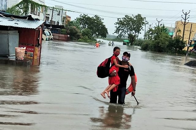 At least seven persons are feared dead in separate incidents in Telangana due to the floods. On Monday, a dinghy carrying 13 persons overturned in Krishna river in which three women and a girl went missing. The incident took place near Dattatreya temple in Narayanpet district. The victims have been identified as Sumalatha, her daughter Roja, Parvathama and Narasamma. The victims had crossed the river and come to Telangana to buy essential commodities, reported The New Indian Express.