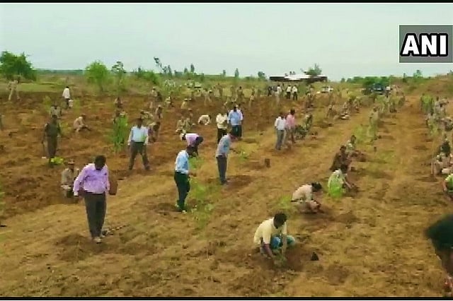 Under heavy police security, officials reportedly planted 22,000 saplings in the contentious site of forest land, spread over 20 hectares, at Sarasala village in Kumarambheem Asifabad district's Kagaznagar mandal.