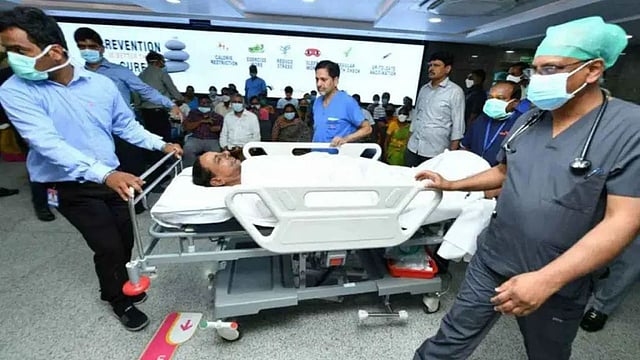 KCR, who has moved to his farmhouse in Erravalli, Siddipet following his defeat in the recently concluded Assembly elections, reportedly fell in the bathroom. He was admitted to the hospital at around 1 am.