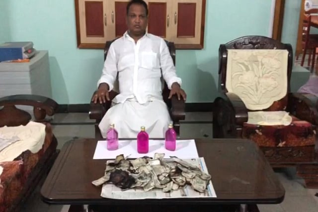 ACB officials recovered the partially burnt currency notes from Venkataiah's residence and took him into custody. The New Indian Express reported that Venkataiah has linked to the Telangana Rastra Samithi (TRS), the ruling party in Telangana.