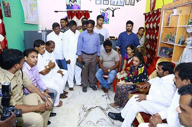 Telangana SC Development Minister G Jagadish Reddy visited Miryalaguda in Nalgonda district on Thursday and met Pranay's family to express his condolences.