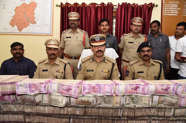 On Tuesday, Warangal police at Pembarti check post, found a car which was allegedly carrying cash. A statement from Warangal Commissioner of Police, V Ravinder said that the sub-inspector from the Janagoan police station seized Rs 5.80 crore and arrested three persons including the driver of the vehicle.