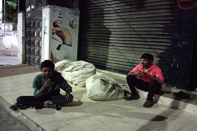 It's past 8: 30 pm on Wednesday, day one of the newly imposed lockdown in Telangana's Hyderabad, and 28-year old Eeresh, a ragpicker by profession, was planning on sleeping hungry again. "I haven't eaten anything since yesterday," he says. Eeresh, along with his two other ragpicker companions, was settling down to sleep on the footpath. “Last year I went hungry for several days during the three months of lockdown. We hoped people would donate some food packets like they did last time, but no one came with any food,” he adds.