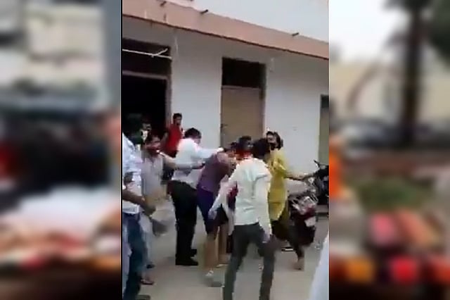 In the 1:10 minute-long video shot at the Lal Darwaja locality under the Mughalpura police station, several persons could be seen crowding around a Ganesh idol. Soon after a clunking sound supposedly that of a plate being dropped is heard in the background, several men begin exchanging blows with each other. The policemen on duty could be seen attempting to pull the men apart and the scuffle ends as the video ends. However this video has been making the rounds with several twitter handles claiming that local goods damaged the idol as they were opposed to the installation, the tweets also claimed that those who opposed the installation were trashed.