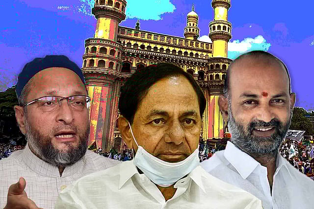 The action-packed Hyderabad municipal election has ended on a cliffhanger, as counting of votes concluded on Friday evening. Of the 150 wards that went to polls earlier this week, the TRS (Telangana Rashtra Samithi) has won the highest numbers of seats at 55, a considerable fall from the previous 2016 GHMC election where the ruling party in Telangana had won 99 seats. The BJP, on the other hand, has made substantial gains, from a mere four seats in 2016 to 48 seats this year. The AIMIM(All India Majlis-e-Ittehad-ul-Muslimeen) has mostly retained its stronghold, winning in 44 wards (results for one ward have been withheld). However, none of these major parties have managed to attain the absolute majority of 98 wards (including those of ex-officio members including MLAs and MLCs of their party), required to vote their party candidate as the Mayor.