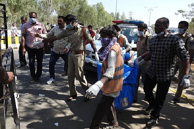 The body was found around 7.30am by two workers of the Greater Hyderabad Municipal Corporation (GHMC) as they did their morning rounds to collect garbage.