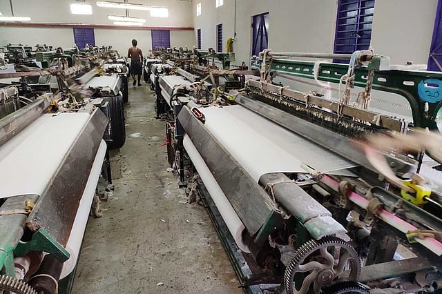 The power loom has a high noise level around 94-99 dB, extremely sultry ambience with poor lighting, and flying dust. The doors are almost always kept closed. Work at the power loom is segregated by gender; women are employed in spinning the thread, and men and women work on the looms. Women typically handle six machines or less and men handle up to ten machines.