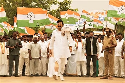 This is the first scene from the trailer of the film Yatra, biopic of YS Rajasekhara Reddy, directed by Mahi Raghav, that is all set to hit the screens this Friday. And if the trailer is anything to go by, the Congress fears that the movie will unleash a narrative against the party, that too during the eve of elections.
