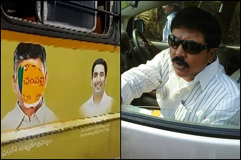 Angered by Naidu's face being torn from the poster, the MLA got into a heated debate with the driver of the bus. When a passerby tried to intervene, Prabhakar allegedly slapped him.