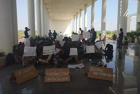 Ten students belonging to the Central University of Tamil Nadu (CUTN) in Thiruvarur began an indefinite hunger strike on Friday demanding that the management revoke the termination of two assistant professors. This after the management terminated the two assistant professors, who also worked as resident wardens in the women’s hostels, for allowing girls students inside the hostel beyond the curfew time of 9.30pm.