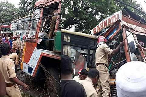 Talking to TNM, the Kottiyam Circle Inspector said the incident took place around 6:30 am on Monday near the Ithikkara bridge, when the Kerala RTC bus travelling from Mananthavady to Thiruvananthapuram collided with a truck travelling from Thiruvananthapuram to Ernakulam.