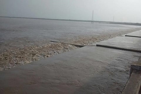 At 6 pm on Saturday, the floodwater had a discharge at a rate of 11,10,953 cusecs per hour and was released from 175 gates of Dowleswaram barrage in Rajamahendravaram. The inflows at the barrage also stood at the same outflow figure, reported TNIE.