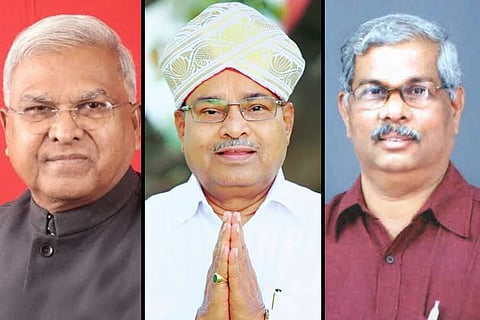 Collage of Mangubhai Chhaganbhai Patel, Thawarchand Gehlot, Rajendra Vishwanath Arlekar from left to right