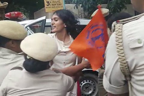 Akhila Bharatiya Vidyarthi Parishad (ABVP) members stormed the residence of Karnataka Home Minister Araga Jnanendra in Bengaluru in protest against the murder of BJP Yuva Morcha member Praveen Nettaru.