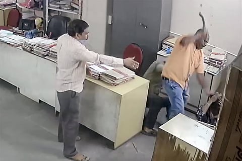 In an appalling incident in Nellore, the Andhra Pradesh Tourism Department’s Deputy Manager C Bhaskar assaulted Usharani, a woman colleague, in the office with a thick wooden stick. The incident was caught on CCTV camera, and Bhaskar has been suspended, an official from the Tourism Department told TNM.