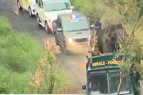 By 5.00 pm, the team of officials and the four kumki elephants successfully managed to push Arikomban onto an 'elephant ambulance', fixed on a lorry using huge wooden poles. Then started the next phase of the operation when two staff members climbed on top of the elephant and fixed a radio collar that was brought from Assam, weighing around 8 kg.
