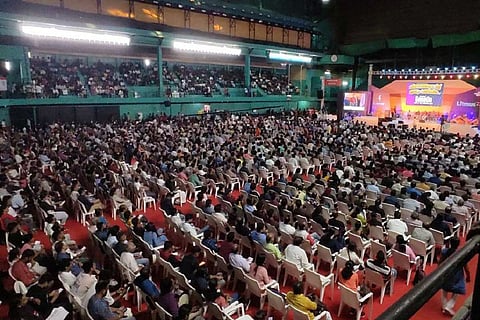 Around 10,000 people gathered at the Rajiv Gandhi Indoor Stadium at Kadavanthara in Kerala’s Ernakulam district on October 2, Sunday, to attend an annual meet named ‘Litmus 22’, pitched as “the world’s biggest atheist meet in ‘god’s own country’”. The meet was organised by esSENSE Global, a group of atheists who refer to themselves as ‘freethinkers with a scientific temperament’. The participants included several writers, scientists, critics and activists, who discussed and debated topics ranging from atheism, religion and casteism to Hindutva and political Islam.