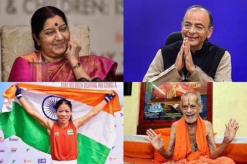 Former MPs George Fernandes (Posthumous), Arun Jaitley (Posthumous), Sushma Swaraj (Posthumous), former Prime Minister of Mauritius Anerood Jugnauth GCSK, Olympic boxer Mary Kom, singer Chhannulal Mishra and Seer Vishwesha Teertha Swami of Pejavara Mutt in Karnataka (Posthumous) have been conferred with the Padma Vibhushan, which is awarded for exceptional and distinguished service.