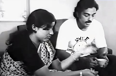 From the start, the film plays with the idea of cinema to great effect. So you have Haasan’s voice, echoing words thrown around by film crews, running over the opening credits. The effect is ominous and disturbing. It may be that director C Rudhraiya, who debuted with this film, wanted to suggest that this was just a movie, but one that may not end well.