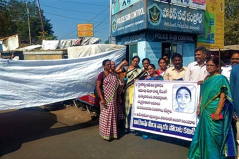 Scores of people gathered on the streets of Vijayawada on Saturday to protest the delay of the Special Investigation Team (SIT) in probing the murder of Ayesha Meera.
