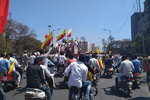 Initially, the police said that they had not granted any permission for the rally, however, the people began gathering at the City railway station. When enough numbers had gathered, the rally began at around 11.30 am towards Freedom park. The people walked all the way, shouting slogans, waving the Karnataka flag.