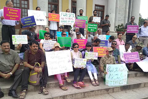 The protest was postponed to Wednesday as environmentalists were expecting the government to go back on the controversial transfer order. In fact, informed sources had said despite the transfer order by CM HD Kumaraswamy on October 5, Forest Minister R Shankar coming to know about the public sentiment had instructed senior forest officials to put the movement orders on hold. However, the movement certificate was eventually issued to him on October 12.