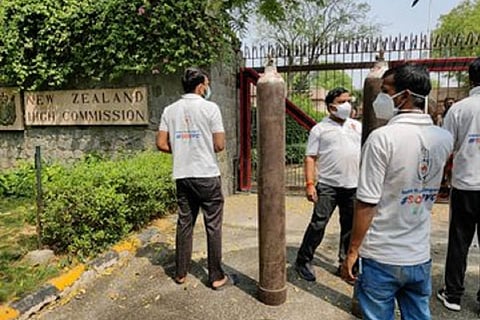 The High Commission said, “We are trying all sources to arrange for oxygen cylinders urgently and our appeal has unfortunately been misinterpreted, for which we are sorry.” But reacting quickly, the Indian Youth Congress team of volunteers reached out to the New Zealand High Commission and arrived at their gates with an oxygen cylinder. Photos and videos of the team waiting for the gates to be opened have been doing the rounds on social media.