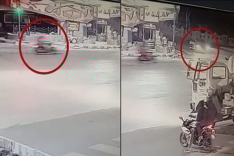 This tragic accident at Hyderabad's Cyber Tower junction was caught on CCTV. A drunk man in a car rammed his vehicle into a couple on their bike. The man on the bike succumbed to his injuries on the spot and his wife is critical and battling for her life. #DontDrinkAndDrive pic.twitter.com/zKGgkFxEYk