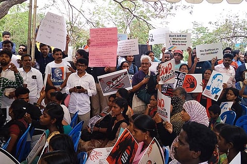 A gathering of about 500 people, Chennai witnessed on Saturday three hours of passionate protests against the recent public lynching of a Muslim youngster in UP, and several other violent attacks against people from disadvantaged or minority communities in the past few months. ‘Break The Silence’ was organized in solidarity with the ‘Not In My Name’ protests held in several cities across the country, including Delhi, Hyderabad, Bengaluru and Thiruvanthapuram.