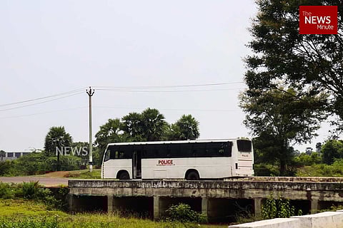Police officers at the entry point of Eganapuram Village (TNM Photo by Nithya Pandian)