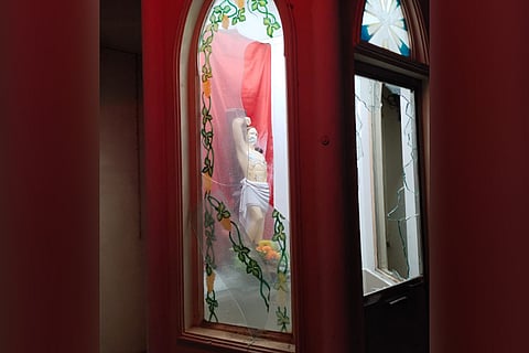 According to the complaint filed by Bastin Joseph, the Assistant Father of the Trinity Church, the incident took place between 10 pm and 11:45 pm on Sunday night. The men reportedly came on a two-wheeler. One of them climbed the gate of the church and entered the premises before damaging the statue of Sebasthiyar inside the campus. They both reportedly escaped after the incident. The watchman of the church named Johnson witnessed the incident and informed the complainant, according to the copy of the complaint.