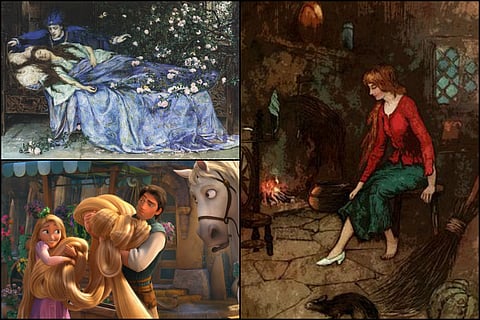 (Main image courtesy: Clockwise from top - Sleeping Beauty via commons.wikepedia.org, Cindrella, Rapunzel via flikr.com)