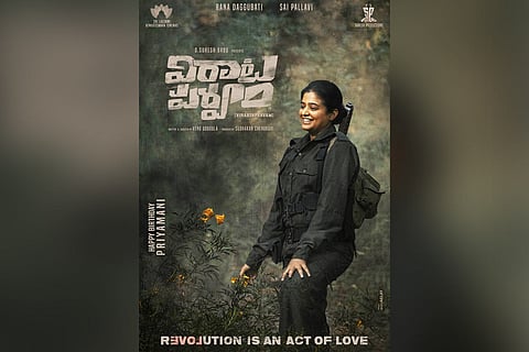 Rana Daggubati shared the poster and tweeted in Telugu about the importance of Priyamani's character in the movie, " She believes that a Great crisis would also lead to a great peace. She, the role of Comrade Baarathakka is as important to Virata Parvam that students were to French revolution. Happy Birthday Priyamani!"