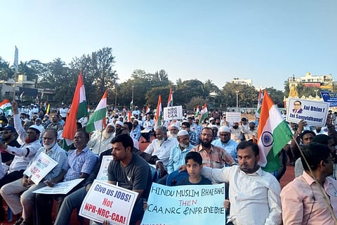 Continuing their protests demanding the repeal of Citizenship Amendment Act (CAA), National Register of Citizens (NRC) and the National Population Register (NPR), scores of people turned up for a public meeting in Jayanagar on Monday, right opposite the office of BJP MP Tejasvi Surya.