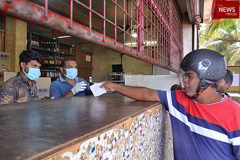 A handful of men who have come to pick a bottle or two of alcohol are maintaining a certain distance from each other, diligently staying within the columns marked on the ground of the area leading up to the beverage counter. These are visuals shot from two outlets of the Kerala State Beverages Corporation (Bevco). At an outlet in Kannur, the men are seen maintaining distance without any lines marked on the floor.