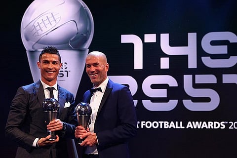 Real Madrid's Zinedine Zidane was named best men's coach for 2017, becoming the first man to lead his team to a successful defense of the European Cup in the Champions League era.