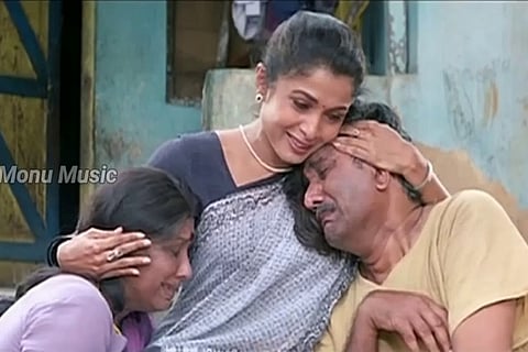 Dasari’s Meghasandesam (1983) is about a married poet Ravindra Babu, played by Akkineni Nageshwar Rao, who falls in love with a dancer named Padma, played by Jayaprada. His poetry about the dancer brings him great success. The movie’s only moment of glory, was when Ravindra Babu’s wife Parvathi, played by Jayasudha, leaves him.