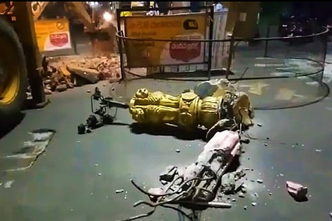 The demolition of the historic Three Lanterns Pillar in the heart of Vizianagaram town in Andhra Pradesh has triggered a row in the state, with the Telugu Desam Party (TDP) accusing the ruling YSRCP government of 'petty politics'.